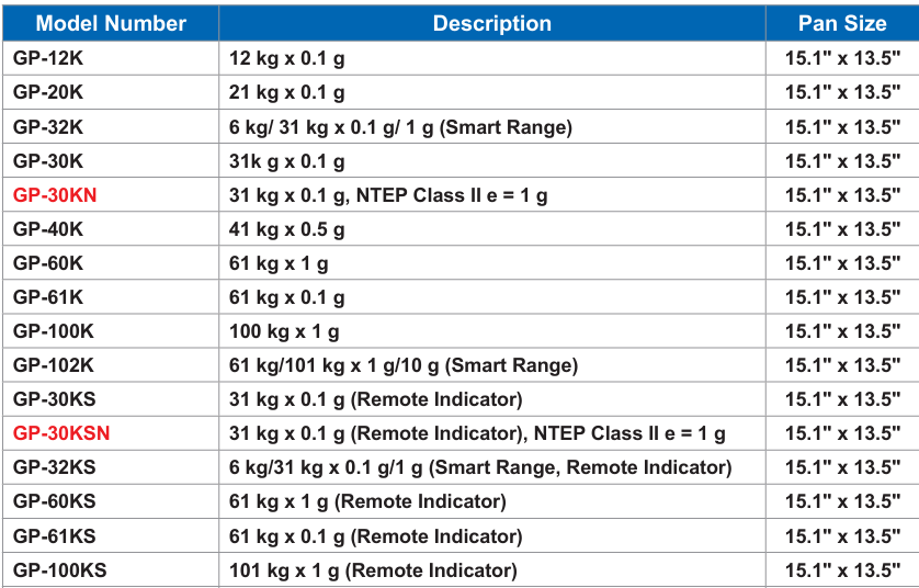 Class II NTEP certified models (GP-30KN and GP-30KSN)